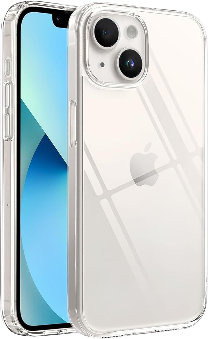 iphone ile Uyumlu Cyrstal Clear Şeffaf Silikon Kılıf Arkası Sert Polikarbonat Kenarları Yumuşak Tpu Silikon Premium Ultra Şeffaf Kılıf Kapak (Cyrstal Clear, 13-14)