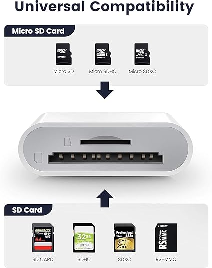 [Kapasite ve format desteği] iPhone için SD kart okuyucu maksimum 256 GB kapasiteli hafıza kartlarını destekler. iPhone adaptörü standart fotoğraf formatlarını (JPEG/PNG/GIF/M/MG dahil) ve SD ve HD video formatlarını (H.264 ve MPEG-4 dahil) destekler. Telefon için hafıza kartı okuyucu SD, SDHC, SDXC, MicroSD, MicroSDXC ve MicroSDHC bellek kartları ile uyumludur.