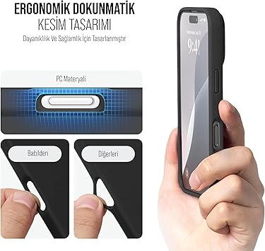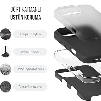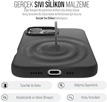 iPhone Kılıf İnce Sıvı Silikon 3 Katmanlı Tam Kaplamalı Yumuşak Jel Kauçuk Kılıf Kapak (Siyah, iPhone 16 Pro)