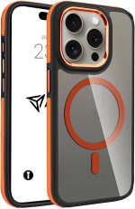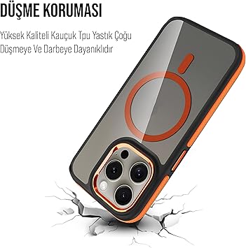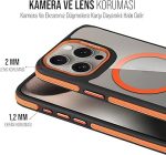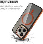 iPhone MagSafe ile Uyumlu Askeri Sınıfta Koruma Sararma Önleyici Çizilmeye Dirençli Sırt Manyetik Telefon Kılıfı (Turuncu, iPhone 14 Pro Max)