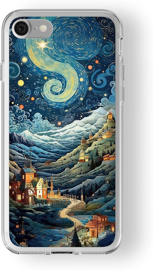 iPhone SE 2020 ve 2022 ile Uyumlu The Starry Night Tasarım Baskılı Şeffaf Kılıf