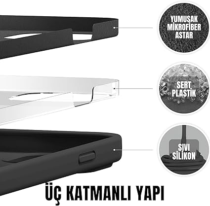 iPhone Serisi İPhone Lansman Kılıf İnce Sıvı Silikon 3 Katmanlı Tam Kaplamalı Yumuşak Jel Kauçuk Telefon Kılıfı (siyah, iPhone 13/14)