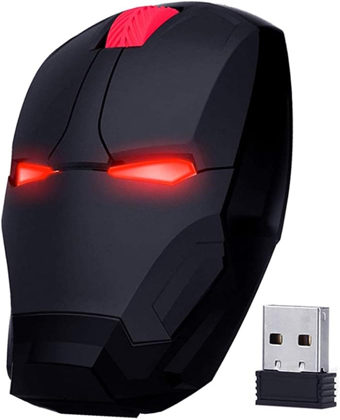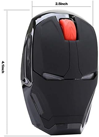 Iron Man Mouse 2,4 GHz Gürültüsüz Sessiz Bilgisayar Faresi, LED Dekor Işığı Masaüstü Dizüstü Bilgisayar Faresi Windows Mac için (Siyah)