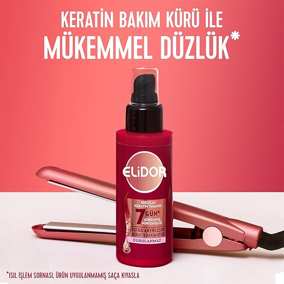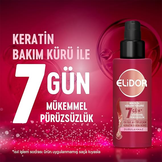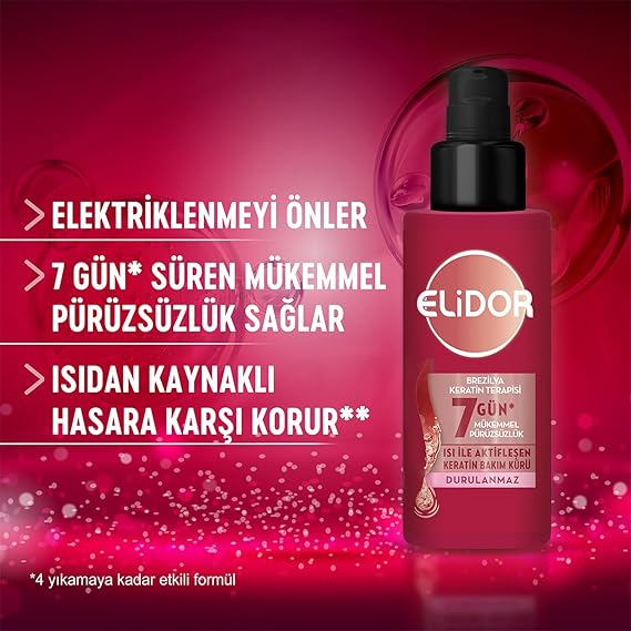Saçların 7 gün** boyunca mükemmel pürüzsüz kalmasını sağlar. (**4 yıkamaya kadar)