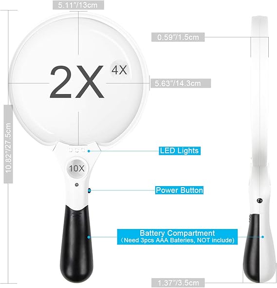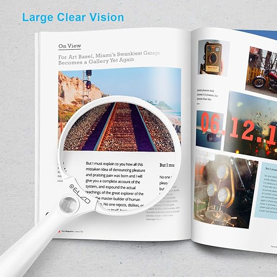 ▶ İdeal büyüteç – Kitaplarda, gazetelerde, dergilerde, kartlarda, takılarda, tablet şişelerinde, hobilerde ve el sanatlarında ince ayrıntıları gösterir. Çocuklar, yetişkinler, yaşlılar, el işi yapanlar için konforlu ergonomik sap.