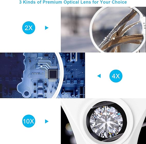 Işıklı büyüteç, 2 x 4 x 10 x, ışıklı okuma büyüteci, 3 LED’li büyüteç, yüksek netlik ve hafif, yaşlılar, kuyumcular, el işleri, kitaplar için el büyüteci