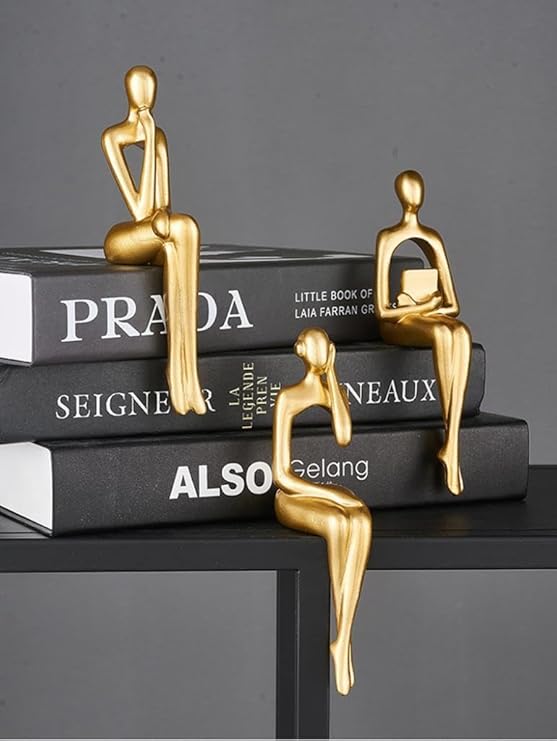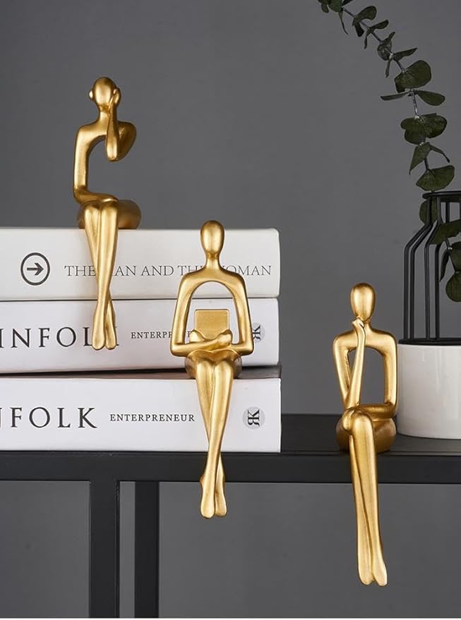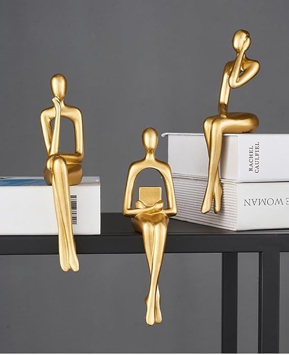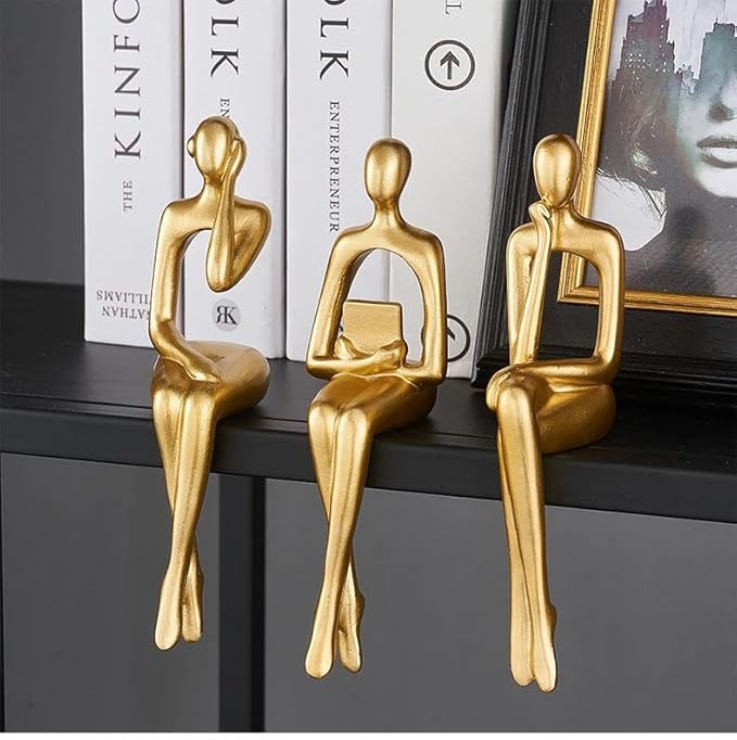 İskandinav Tarz Dekoratif 3 Adet Soyut Düşünen Heykel Biblo Ev Dekorasyon Raf Dekoru Oturma Odası Aksesuar Altın