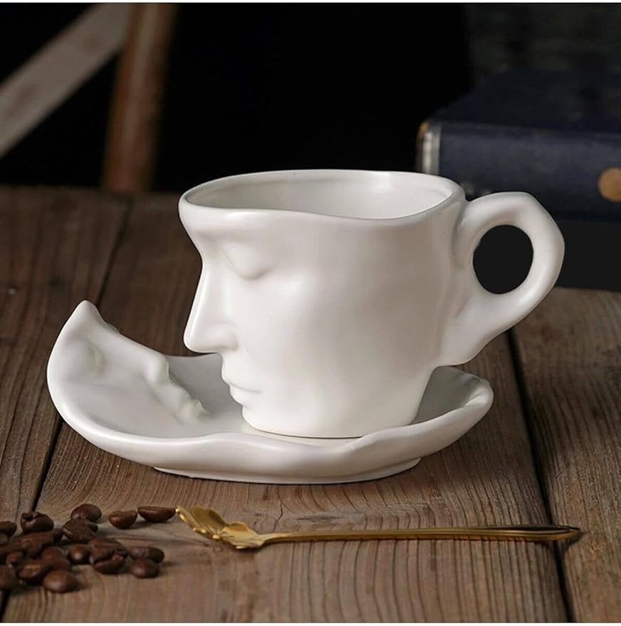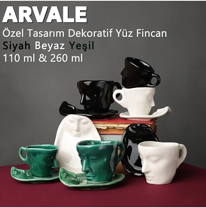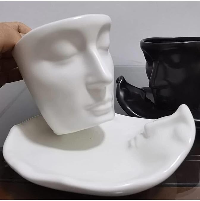 Iskandinav Yüz Şekilli Fincan Takımı 1 Adet 260 ml Beyaz – Kupa Kahve Fincan Takımı