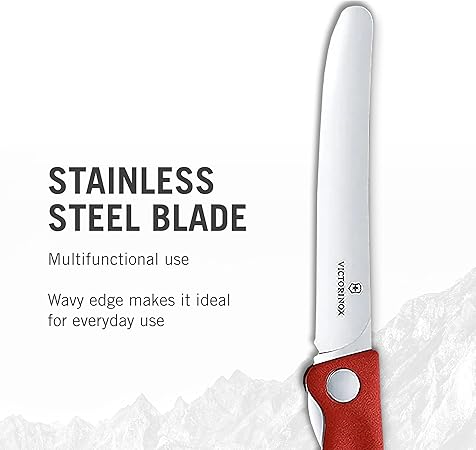 İsviçre Klasik Katlanır Sebze Bıçağı düz kesim Bulaşık makinesinde yıkanabilir 11 cm Kırmızı Blister paketi