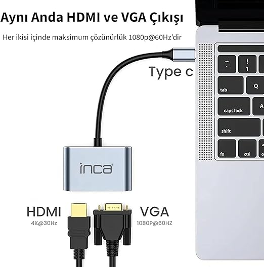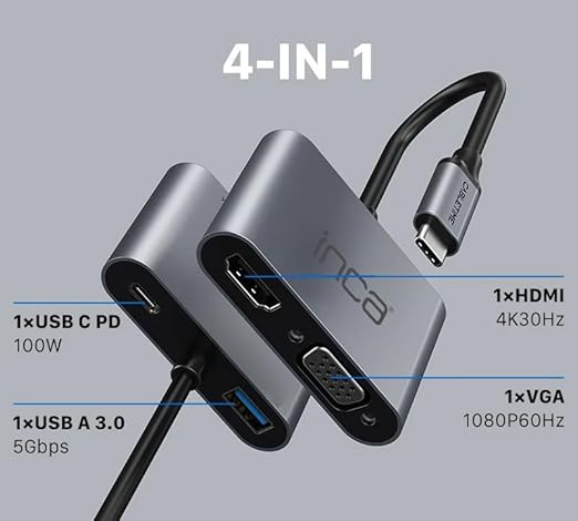 ÇOKLU BAĞLANTI: 4’ü 1 arada Type-C hub adaptör, HDMI 4K@30Hz, VGA 1080P@60Hz, USB 3.0 ve 100W güç dağıtımı özelliklerine sahiptir