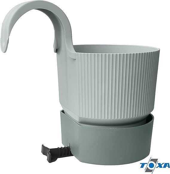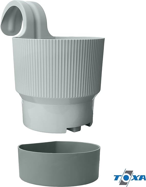 Ixora Tek Askılı Balkon Saksısı Tabaklı Mat Plastik Saksı (1 Adet, Gri)
