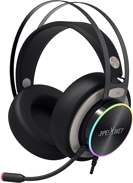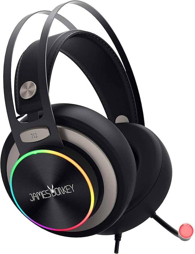 James Donkey 712 Siyah 7.1 Surround RGB Gaming Kulaklık Neodimyum 50mm Sürücüler 112dB Hassas Mikrofon -43dB RGB LED Aydınlatmalı Manuel + Yazılımla Ses Kontrol USB Bağlantı ve Ses Kartı