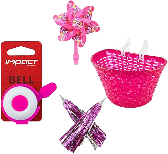 Jant Uyumlu Kız Çocuk Bisikleti Aksesuar Seti Pembe(Püskül-Rüzgar Gülü-Ön Sepet-Zil)