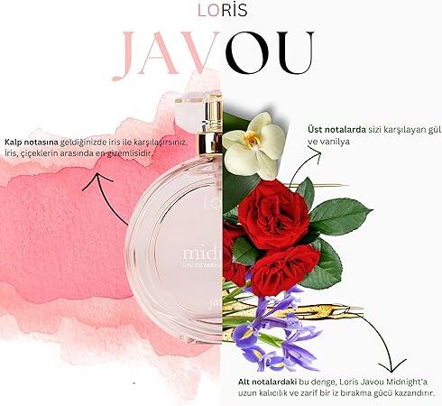 Javou Midnight EDP Kadın Parfümü 100 ML | Kalıcı, Gül ve Vanilya Notalı Tatlı Koku