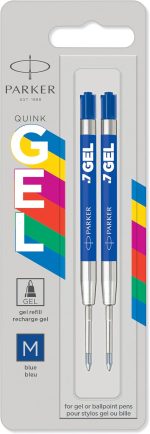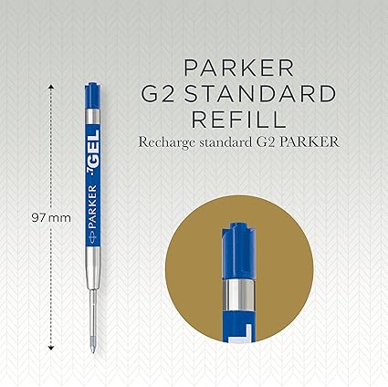 İçerik: 2 adet mavi jel mürekkepli dolum ucu, tüm Parker tükenmez ve jel kalemler için