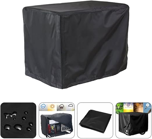 Jeneratör kılıfı, dikdörtgen, dış mekan saklama kılıfı, su geçirmez, hava koşullarına dayanıklı, Oxford jeneratör, UV korumalı, yağmur barınağı örtüsü, 66 x 51 x 51 cm, siyah