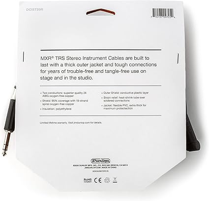 JIM Dunlop TRS Stereo Enstrüman Kablosu 20 Ayak | 6,1 m, 1/4 İnç Açılı Fiş (DCIST20R)