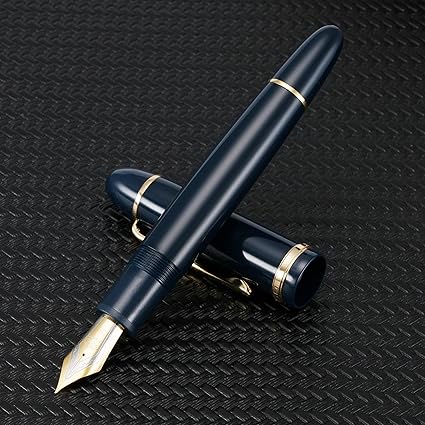 Jinhao X159 İnce Uçlu Dolma Kalem, Koyu Mavi Altın Klipsli Akrilik Büyük Boy Yazı Kalemi