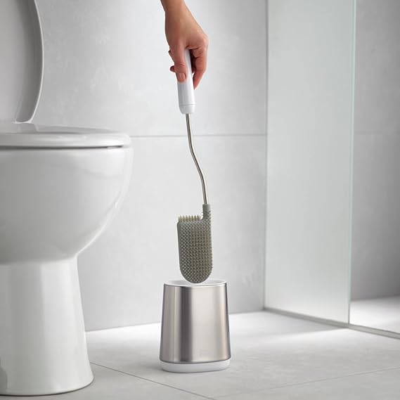 Joseph Flex Lite – İnce saplı silikon tuvalet fırçası, esnek, damlatmaz, tıkanmaz başlık, paslanmaz çelik