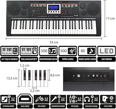 JTK-3350 61 Tuş Hassasiyetli 5 Oktav Org (Adaptör Hediye)