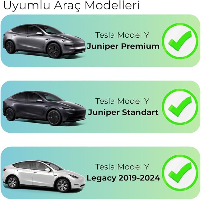 Tesla Model Y Juniper ve Model Y 2019-2025 ile uyumludur.