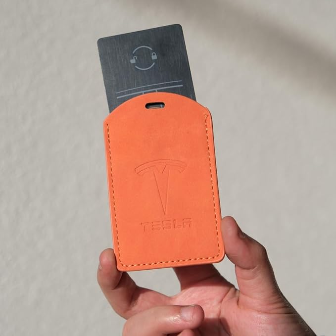 Tesla anahtar kartı için deri malzemeden üretilmiştir