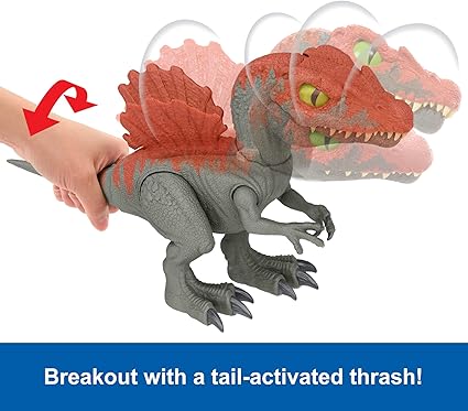 BREAKOUT! Muhteşem Spinosaurus’un kuyruğunu yan yana hareket ettirerek fırlatıcı hareketiyle kutudan çıkmasına yardımcı olun. Agresif bir dino chomp için üstteki düğmeye basın!