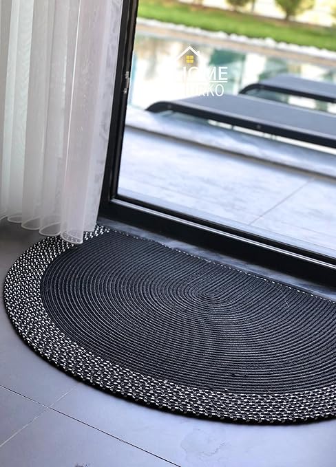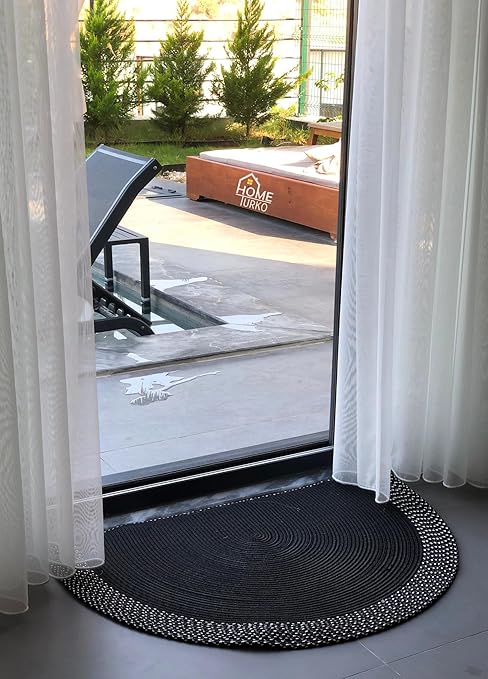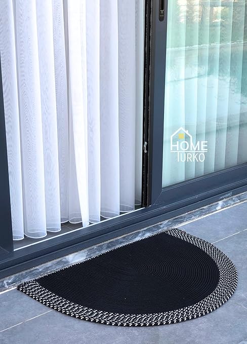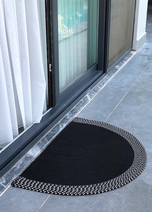 Jüt Yarım Daire Kapı Önü Paspası | Kaymaz Tabanlı | Doğal El Dokuma | Şık ve Dekoratif D paspas (Kapı Girişleri, Banyo ve Balkon Kullanımı İçin) (Siyah, 50 * 70)