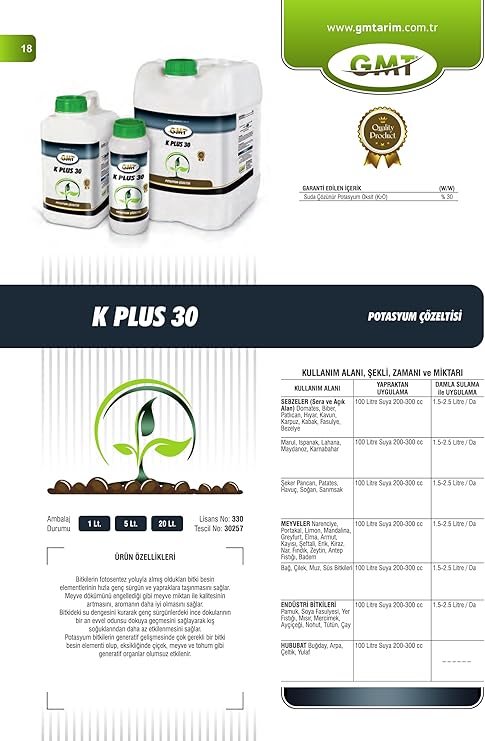 K Plus 30 1 Lt (Potasyum Çözeltisi)Uygunluk: 30 adet stokta