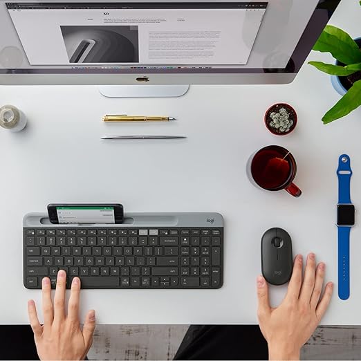 Hem bilgisayarınızla hem akıllı telefonunuzla hem de tabletinizle çalışır; Easy Switch tuşları, birden çok cihazı eşleştirmenize ve bunlar arasında geçiş yapmanıza olanak tanır; yerleşik telefon yuvası bulunur