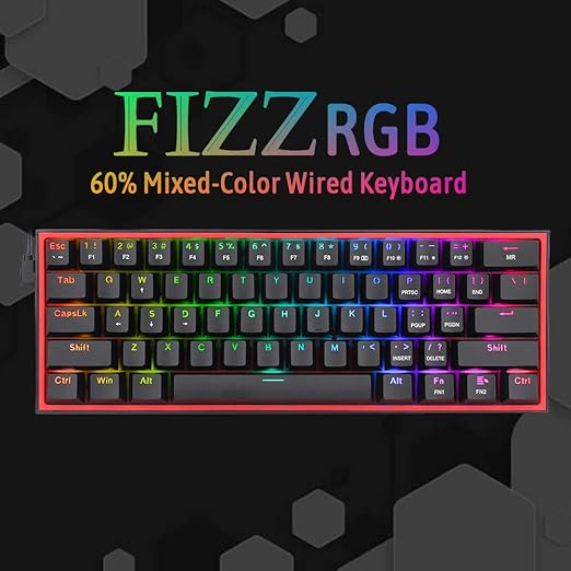 K617-RGB 16,8 Milyon RGB Aydınlatma, Red Switch Fizz%60 Q Türkçe Kablolu Mekanik Oyuncu Klavyesi Siyah