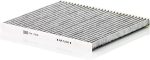 Aktif Karbonlu Mann-Filter Kabin Filtresi, polen, dizel kurumu ve lastik aşınması gibi parçacıklara ve ayrıca zararlı gazlara ve hoş olmayan kokulara karşı da etkin koruma sağlar