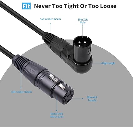 Kablo, 90 Derece Dik açı Erkek Kadın Mikrofon Kablosu, Hoparlör Için 3 Pin Mic Konnektör Kablosu, Kayıt Stüdyosu, Mic Mikser, Ses Arabirimi, Amplifikatör, Daha (30 cm / 11,81