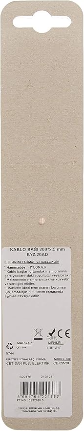Kablo Bağı 200 X 2.5 mm 20 Adet Beyaz