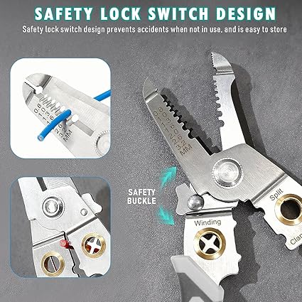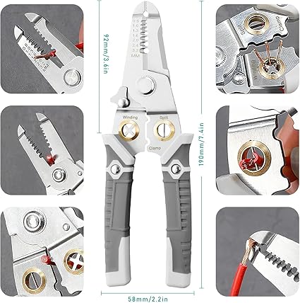 【Çok İşlevli】: Sıyırma aleti çok yönlüdür ve telleri sıyırmak, kesmek, preslemek, sarmak, bölmek, kesmek ve sıkıştırmak için kullanılabilir. Hızlı ve etkili.