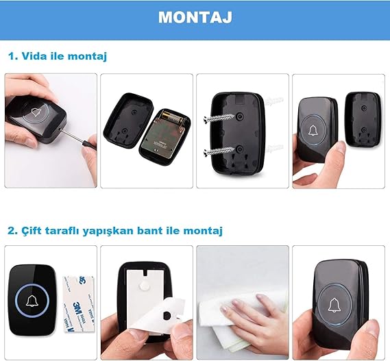 UZUN MENZİL MESAFESİ; Açık havada 300 metreye kadar , duvar olan mekanlarda 150 metreye kadar sorunsuz çalışır.İster yatak odasında ister mutfakta olun, kablosuz kapı zilinin sesini kolaylıkla duyabilirsiniz.