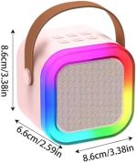 Kablosuz Mikrofonlu Karaoke Makinesi Taşınabilir Bluetooth Hoparlör Seti Bas Tiz Ayarlı Retro Karaoke Hoparlör Yetişkinler ve Çocuklar İçin Hafıza Kartı ve USB 10 x 10 x 6cm (K12 – Pembe)
