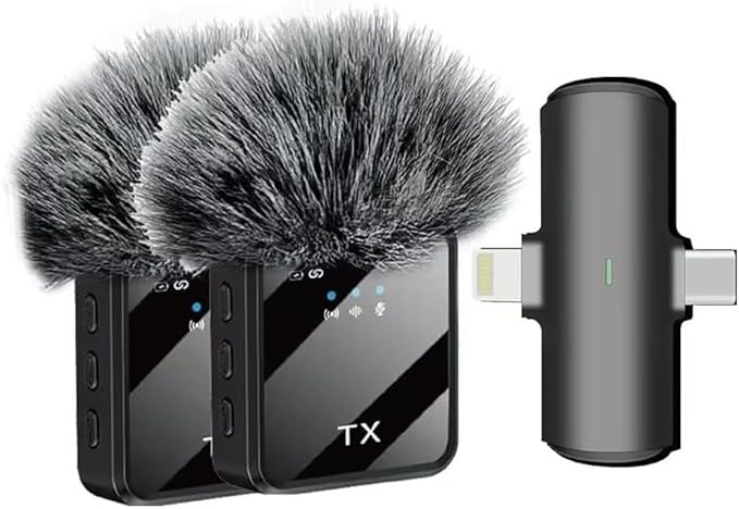 Kablosuz Yaka Mikrofonu Çiftli Mikrofon iPhone 15 16 17 ile Uyumlu TYPE-C/Lightning Portlu Telefon PC Tablet Video Kayıt Röportaj Canlı Yayın Vlog Kablosuz Mikrofon F15-2