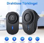 Kablosuz zil, dış mekan için su geçirmez, kablosuz kapı zili, kablosuz set, dış mekan için kablosuz kapı zili, kablosuz, uzaktan kumandalı kapı zili, 52 melodi, 5 ses seviyesi, siyah