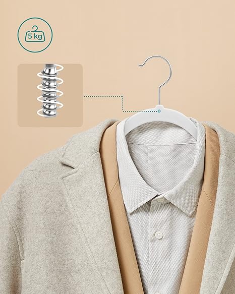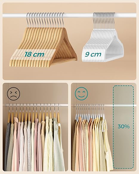Askıların ince şekli sayesinde elbise dolabınızda daha fazla kıyafet asmak için yerden tasarruf edebilirsiniz