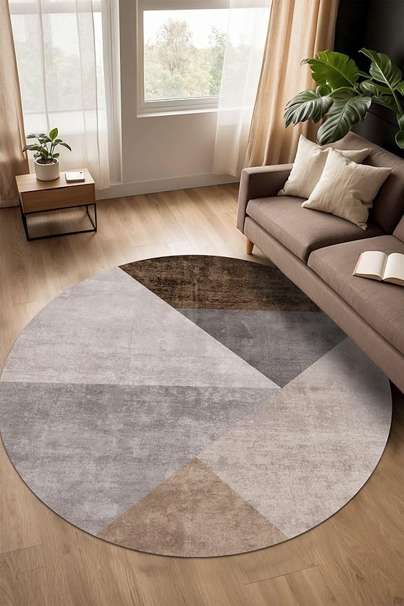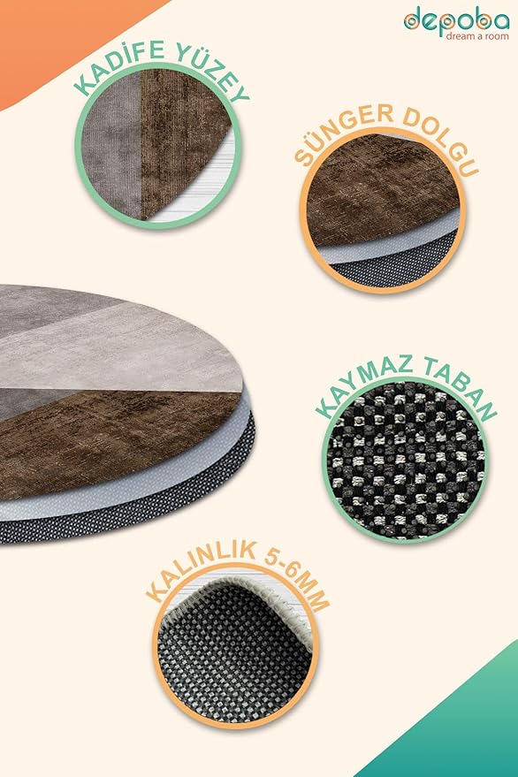 Kadife Modern Kaymaz Pamuk Tabanlı Yıkanabilir Antibakteriyel Yuvarlak Salon Halısı 160×160
