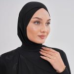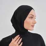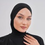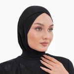 Kadın Siyah Tesettür Bone – Çapraz Model, Esnek ve Şık Şal Bone | Spor, Yüzücü, Deniz & Havuz Kullanımına Uygun