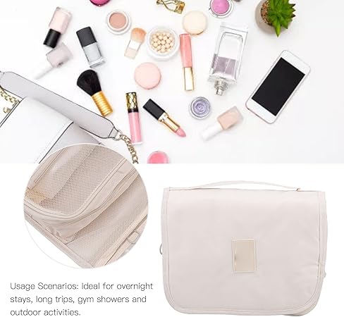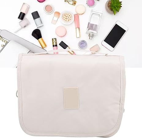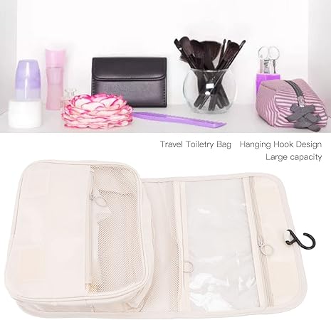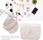 Kadınlar için asmak için kişisel bakım çantası, asma kancalı, makyaj kozmetik düzenleyici, seyahat aksesuarları için, banyo, kancalı duş çantası, bej