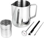 Kahve 350ml süt köpürtme sürahi fincan buharda sürahi+toz tankı, Latte sanat iğne ve termometre Espresso makinesi sandık makinesi için
