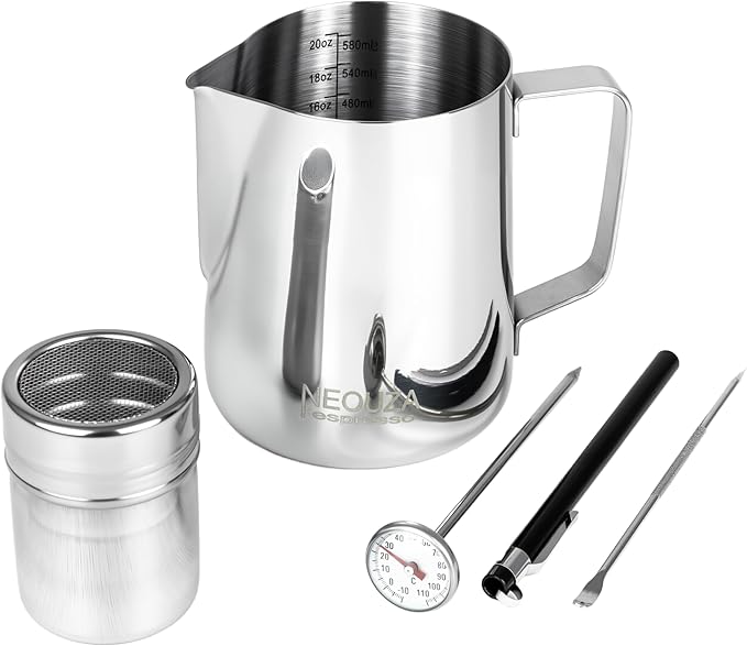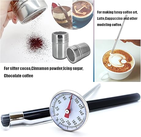 Kahve 350ml süt köpürtme sürahi fincan buharda sürahi+toz tankı, Latte sanat iğne ve termometre Espresso makinesi sandık makinesi için