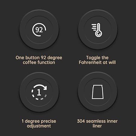 Tek Tıklamayla 92°C/197,6°F ve Hassas Sıcaklık Ayarı: Elektrikli su ısıtıcısının dahili akıllı ısıtma modülü, dijital dokunmatik ekranlı, rahat kahve yapımı için tek tıklamayla 92°C/197,6℉ sıcaklığı destekler. 1°C/33,8℉ hassas sıcaklık ayarını destekleyin ve Celsius/Fahrenheit geçişini yapın.