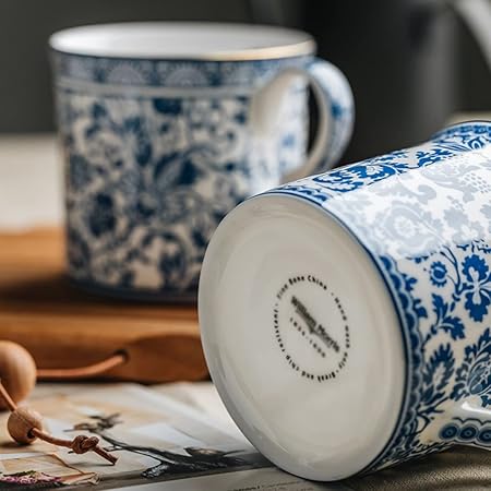 Kahve Fincanı Classical Coffee Cup Ceramic European Afternoon Tea Bone China Tea Cup Retro Blue and White Mug for Home Office kahve kupası (Color : B)