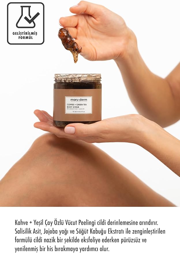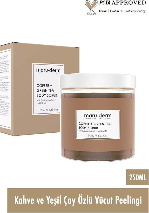 Kahve ve Yeşil Çay Özlü Vücut Peelingi BHA Jojoba Yağı 250 ml