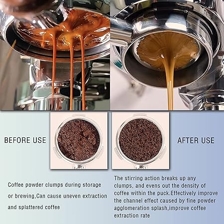 ☕【Etkili Alet】 Bir espresso aksesuarı olarak, kötü ekstrakte edilmeyi iyileştirebilir, demleme sırasında ince kahvenin topaklanmasından veya kanal etkilerinin yaratılmasından kaynaklanan dökülmeyi etkili bir şekilde azaltabilir.