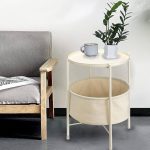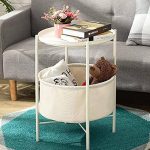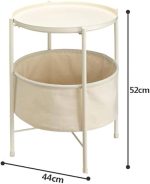 Kahve Yuvarlak Masa, Metal Komidin, Kanepe Yan Sehpa, Çıkarılabilir Tepsi Üstü ve kumaş Depolama Sepeti ile Başucu Sehpası, Yuvarlak Depolama Sehpası, Yatak Odası Oturma Odası ve Ofis için